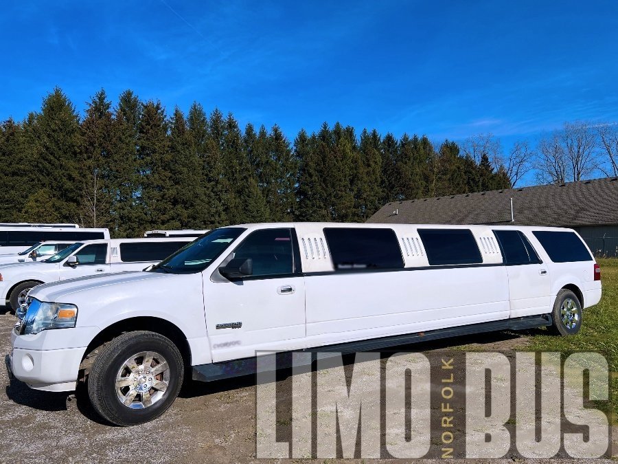 14 Passenger White SUV Limousine – Modern Elegance with Spacious Comfort | Norfolk Limo Bus